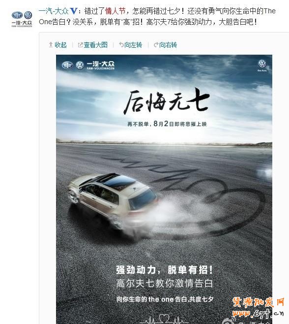 一汽大眾與最近大熱的韓導的電影《后會無期》相聯(lián)系,高爾夫7給你強勁動力,大膽告白吧!