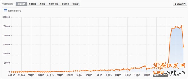 比如一件毛衣,它的主關(guān)鍵詞可以是針織衫,也可以是毛衣。那接下來我們想推廣這個(gè)寶貝,應(yīng)該如何加詞呢?我的建議是,保持主推詞的一致性,我們把這二個(gè)詞放到流量解析里對比一下就可以看出,針織衫的展現(xiàn)指數(shù)和點(diǎn)擊率都遠(yuǎn)高于毛衣,但毛衣的點(diǎn)擊轉(zhuǎn)化率略高手針織衫,這種情況我們肯定選針織衫為主推詞。