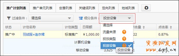 由于移動(dòng)端直通車展現(xiàn)的位置特殊導(dǎo)致點(diǎn)擊率一般要比PC端高好幾倍,你可以在實(shí)時(shí)數(shù)據(jù)查看當(dāng)天的移動(dòng)端投放情況,或在下圖位置查看歷史投放數(shù)據(jù)。不要看到某個(gè)計(jì)劃的點(diǎn)擊率這么高,怎么質(zhì)量得分還是起不來,先去看下點(diǎn)擊率是不是靠移動(dòng)端拉起來的,再看下PC端的實(shí)際點(diǎn)擊率。