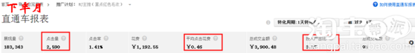 下圖,是我們近一個月的直通車推廣報表,下半月與及上半個月對比,在保證點擊量的情況下,我們CPC不僅降低了,ROI也足足翻了一倍。接下來,就和大家分享一下,如何通過直通車關鍵詞數(shù)據(jù)分析合理優(yōu)化關鍵詞,從而達到降低CPC和提升ROI的目標呢?