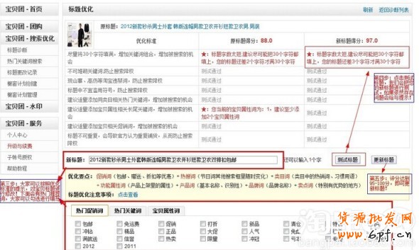 第三步:大家可以按照優(yōu)化標(biāo)準(zhǔn)的提示,對寶貝標(biāo)題進(jìn)行修改,下面會(huì)有熱門測供選擇;
