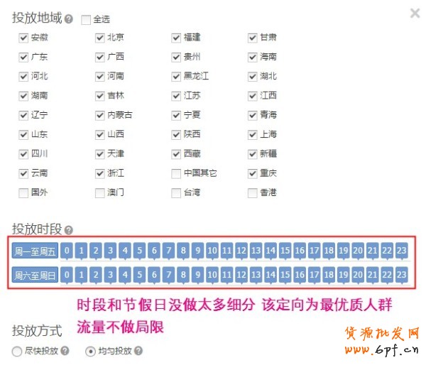 3、資源選擇和出價定向設置