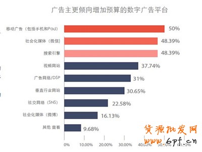 此外,搜索引擎、視頻網(wǎng)站、微博分列2-4位,移動廣告憑借41.94%列在第五位。對于企業(yè)主來說,數(shù)字平臺的百花齊放可以讓他們以最優(yōu)的組合方式在數(shù)字媒體進行廣告投放。