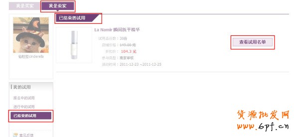 進入試用中心商家后臺,進入【已結(jié)束的試用】,點擊【查看試用名單】,獲取成功的試客名單信息,通過電話和旺旺聯(lián)系試客后,于一周內(nèi)完成試用品發(fā)放。