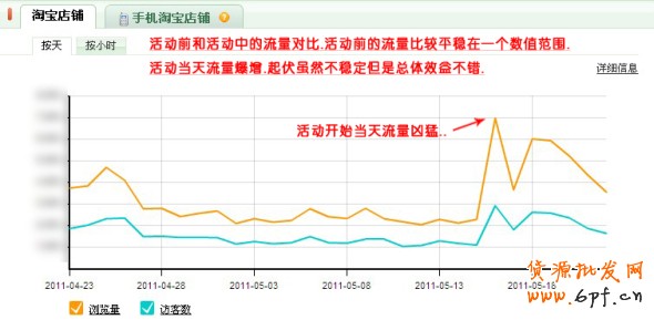 試用專場活動前和活動中的流量對比?;顒娱_始當(dāng)天出現(xiàn)井噴的流量。較平常流量足足翻了三倍。說明試用中心流量是非常可觀的。后期欺負雖然不穩(wěn)定,但是總體效益影響還是相當(dāng)不錯的。