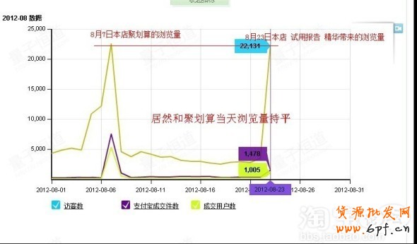 居然當(dāng)天整體頁(yè)面流量達(dá)到了22131,和我們8月7日參加聚劃算的瀏覽量持平,