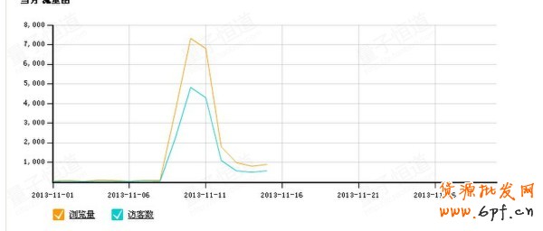 11月7號 8號 流量都沒有超過一百,9號達到3596 10號達到高峰7318.成交金額也劇增