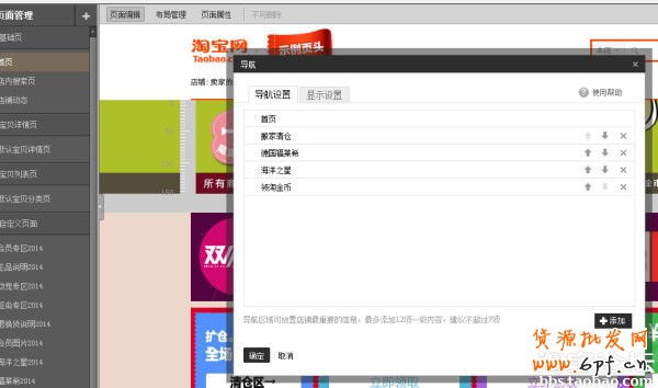 3.然后就回到了導(dǎo)航設(shè)置,可以調(diào)節(jié)順序哦。然后點(diǎn)擊確定,發(fā)布之后就能在店鋪首頁看到了。