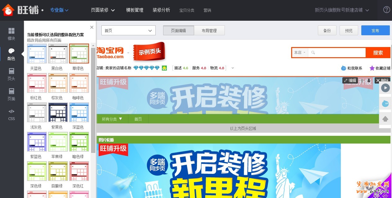 A:主要是旺鋪后臺的操作體驗更好用,界面更好看,并且有多端同步頁面,可以讓你在裝修時節(jié)省人力