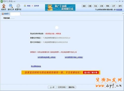 請(qǐng)選擇導(dǎo)出數(shù)據(jù)包位置、導(dǎo)出文件類型及商品描述圖片處理方式,再點(diǎn)擊“導(dǎo)出”按鈕