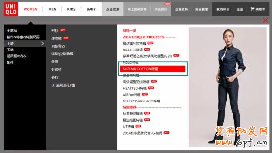 還有一種類型就是由傳統(tǒng)企業(yè)轉(zhuǎn)型而來的電子商務(wù),這類電商網(wǎng)站的營銷通常以單個品牌為主,例如案例中的優(yōu)衣庫。由于分類和數(shù)量都很少,因此除了傳統(tǒng)的科學(xué)分類索引以外,首頁的單品推薦也對單個商品的營銷非常有效。