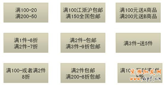具體我們可以以什么樣的方式來(lái)展示呢?下面我們羅列一些簡(jiǎn)單的方式。事實(shí)上我們會(huì)有很多復(fù)雜的方式。比如滿2件江浙滬包郵,滿3件減30,滿5件同時(shí)滿300再減80再全國(guó)包郵等等。這個(gè)時(shí)候就需要我們充分的發(fā)揮我們的想象力來(lái)設(shè)計(jì)出適合自己店鋪的營(yíng)銷方式。