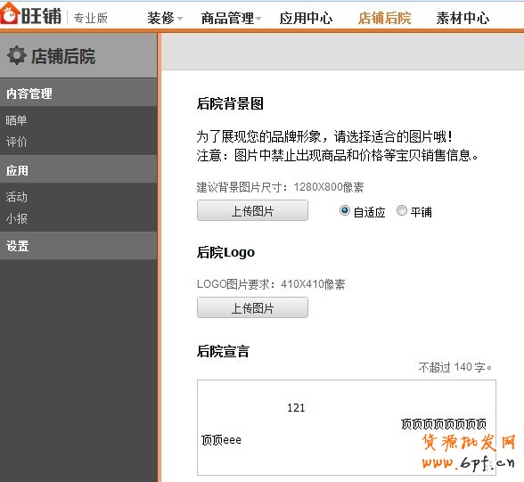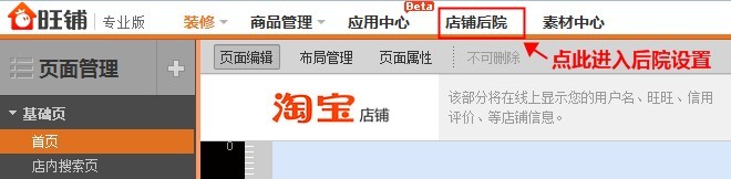 1、新旺鋪用戶:直接進(jìn)入旺鋪裝修后臺,找到導(dǎo)航上的后院,進(jìn)入就行啦。