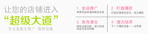 5.公告管理是店鋪推廣頁面的公告欄;通過公告欄把我們的每月的活動以及熱賣的單品都可以放到上面去;淘客通過推廣工頁面來取得我們店鋪的推廣鏈接,他們在復制粘貼推廣鏈接的時候,看到公告欄的信息,會點擊查看。從而彌補我們聯(lián)系不到淘客,無法告訴他們我們的活動時的缺陷;通過廣告管理從后臺把我們制作的素材放上去,然后通過推廣店鋪頁面顯示出來,這個工具是方便一些推廣我們的淘客,不需要再聯(lián)系我們要素材,只要通過推廣的頁面就可以直接找到需要的素材。廣告欄的尺寸是淘寶根據(jù)大部分淘客的素材要求設定好的,我們以后的素材制作可以根據(jù)這些尺寸來做。