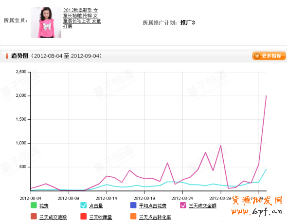 對(duì)比行業(yè)趨勢(shì)圖和直通車流量趨勢(shì)圖,我們發(fā)現(xiàn),該賬戶在推廣過程中與童裝行業(yè)市場(chǎng)的走勢(shì)基本一致。