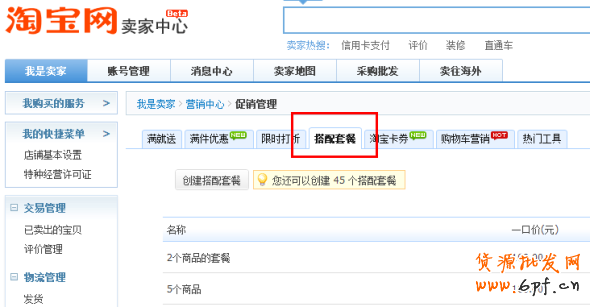 1.用淘寶的搭配套餐功能創(chuàng)建一個套餐,這個我就不多說了。在賣家中心--》促銷管理 那里進行創(chuàng)建。