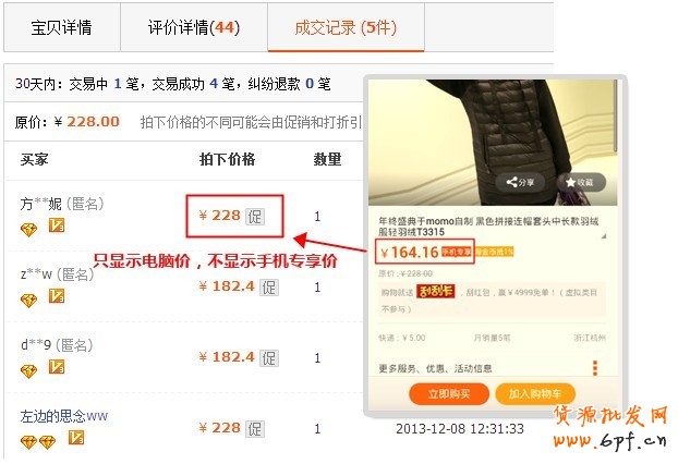 9)成交價(jià)格的展現(xiàn)方式:在電腦端寶貝詳情頁(yè)中展現(xiàn)的歷史成交價(jià)為電腦端的成交價(jià)格而非手機(jī)專享價(jià);