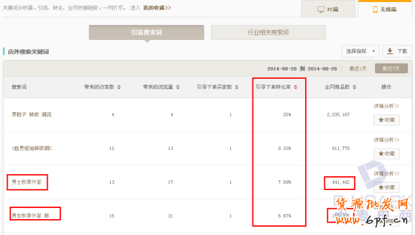 通過無線參謀,我們可以篩選出店鋪無線端搜索關鍵詞中轉化奇高、商品數(shù)又少的關鍵詞。這部分的關鍵詞競爭度都比較低。我們可以把這部分關鍵詞應用到:寶貝標題的優(yōu)化,寶貝詳情頁的優(yōu)化和無線直通車的推廣中。如果我們能夠不停的去收集這些極品關鍵詞,并充分利用好這些詞,相信會為您的店鋪運營帶來出乎意料的效果喔。