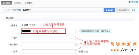 如圖7,在菜單員工管理>部門結(jié)構(gòu)下點(diǎn)擊新建員工,按照?qǐng)D8提示將員工和子賬號(hào)信息錄入即可。