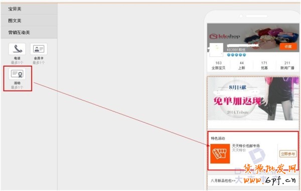 2)當(dāng)我們店鋪報(bào)了淘金幣、天天特價(jià)/清倉(cāng)等活動(dòng)時(shí),通過(guò)展示這個(gè)模塊可以直接清楚展示我們的活動(dòng)信息,讓顧客清楚看到我們的活動(dòng)。