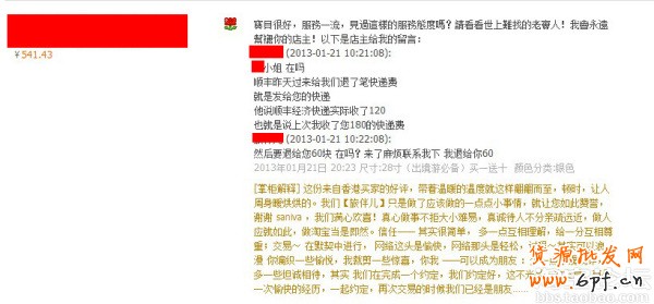 - 你看,就這么簡(jiǎn)單的解決了這個(gè)問題,我聽到很多淘友在群里交流的時(shí)候說(shuō),今天買家收到東西不滿意,然后自己的東西已經(jīng)沒利潤(rùn)了買家還不滿意,然后背地把買家噼里啪啦一頓罵,說(shuō)碰到極品買家了,也不肯給買家點(diǎn)補(bǔ)償什么的,結(jié)果換來(lái)的是差評(píng)!我覺得這樣做很傻,何必呢?為了那一點(diǎn)點(diǎn)錢,得到一個(gè)中差評(píng),事后你還要花不知道多少精力去和買家溝通修改一個(gè)評(píng)價(jià),還未必能修改的過(guò)來(lái),有這時(shí)間和精力當(dāng)初買家找你協(xié)商的時(shí)候你干嘛去了?所以遇到問題的時(shí)候大家要學(xué)會(huì)換位思考,不能以你每天混在淘寶上的心態(tài)來(lái)認(rèn)為買家和你一樣懂淘寶,畢竟買家對(duì)很多問題還是沒有你賣的人清楚的,有問題了一定要真誠(chéng)面對(duì)和解釋!