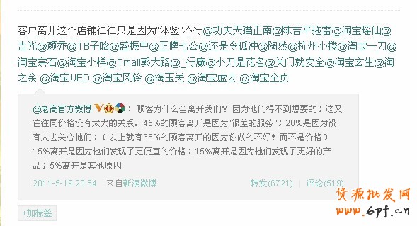 微博要想做好第一價(jià)值,第二定位:首先要提供價(jià)值,如果你是賣(mài)母嬰產(chǎn)品的不妨微博里多發(fā)布一些母嬰的知識(shí),如果你是賣(mài)衣服的可以多教教別人如果搭配,或者適當(dāng)提供一些優(yōu)惠的商品,總之提供價(jià)值很重要,就算是講笑話也要博取粉絲一笑 也是價(jià)值。定位很重要,很多微博搞不清自己要什么,上來(lái)就亂發(fā)一通,很多網(wǎng)店也是這樣的,網(wǎng)店的微博有很多種定位,拿服裝來(lái)講,比如營(yíng)銷(xiāo)定位-主要是新品發(fā)布,新品信息,客戶投訴建議與互動(dòng),還有就是興趣定位,主要針對(duì)客戶興趣,每天發(fā)布服飾搭配小常識(shí),最新流行趨勢(shì)等等
