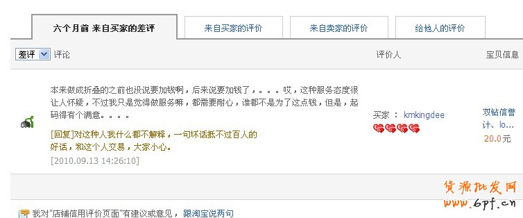 像這個的中差評,你有沒有覺得很抓狂? 極度貪小便宜的,買東西沒贈品的就給差評,買東西不看描述看想象的給差評,這種買家放到哪一個店鋪都會想拉黑他的沖動?。。?/p>