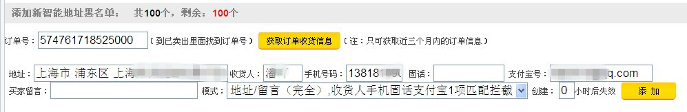 將差評師呀退款師留下的地址通通添加到黑名單去,即使你換ID拍,也一樣下不了訂單。