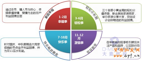 通過策劃組織系列化主題包裝的品牌營銷活動(dòng),給核心顧客的帶去利益回饋。當(dāng)然,這些活動(dòng)的推廣還是需要多渠道的引流來配合推廣的,其中,常見的付費(fèi)流量有直通車推廣、淘寶客推廣、鉆石展位推廣以及淘寶內(nèi)外的硬廣推廣,常見的免費(fèi)流量有關(guān)鍵詞自然搜索流量、類目搜索流量、官方活動(dòng)流量、自主訪問流量等等。