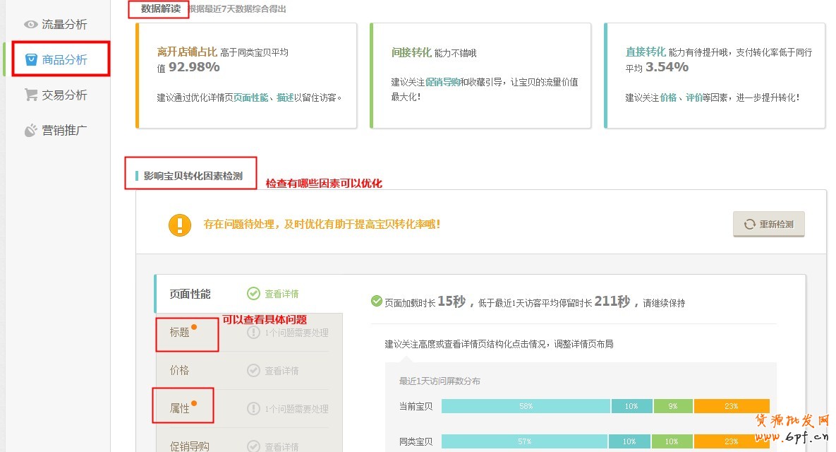 5)對重點關(guān)注的單品,對轉(zhuǎn)化異常的單品,從商品頁面的性能、標(biāo)題、價格等角度明確改進(jìn)措施。