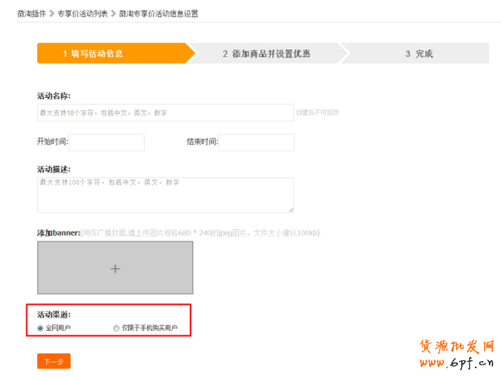 例子二:以下為微淘專享價的界面,通過創(chuàng)建活動進行設(shè)置。