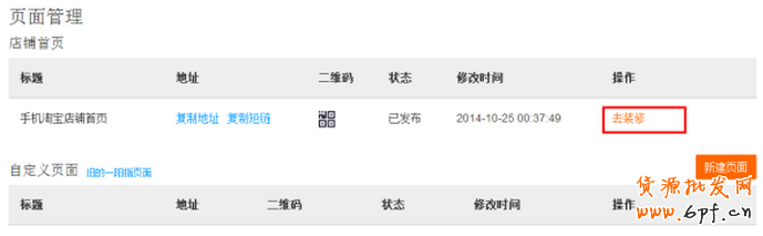 進入后有一個頁面管理,賣家可以直接在此進行店鋪裝修。
