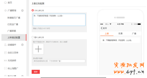 文本公告盡量用比較有吸引力的文案,例如:親,新品隨時更新,假日特價促銷,有買有送哦!