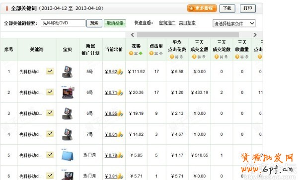 這個(gè)是直通車(chē)推廣里面一個(gè)計(jì)劃表格,首先,我們先分析,這個(gè)點(diǎn)擊率是好還是不好,怎么分析呢?那就是用流量解析,分析一下,大家所在的類(lèi)目平均點(diǎn)擊是多少,先看下自己店鋪寶貝中匹配的類(lèi)目是什么?這個(gè)是實(shí)踐中的操作那我們就先按這個(gè)類(lèi)目來(lái)做分析:類(lèi)目:影音電器>隨身聽(tīng)/便攜視聽(tīng)/收音>移動(dòng)/便攜DVD。