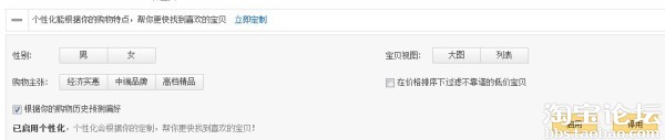我們在淘寶首頁,隨便搜索一個關(guān)鍵詞。發(fā)現(xiàn)有這個提示。這就是系統(tǒng)現(xiàn)在默認(rèn)是給我開啟了個性化搜索的。所以,現(xiàn)階段個性化是非常重要的。你不了解它,就OUT了。