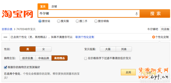 有很多白富美不愿意用天貓和其他B2C,因為覺得天貓都是大眾品牌,白富美希望找到一些個性的,有自己品味的商品,因此其實白富美們非常偏愛淘寶。她們經(jīng)常到淘寶上淘到很喜歡的寶貝?,F(xiàn)在淘寶搜索默認是把天貓和淘寶商品一起包括的,如果希望限定在淘寶商品中應該如何搜索?