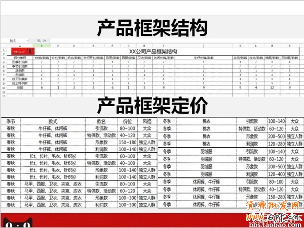 注意點:根據(jù)天貓的要求、自家公司有限的資源制定合理產(chǎn)品框架結(jié)構(gòu)表跟價位表。