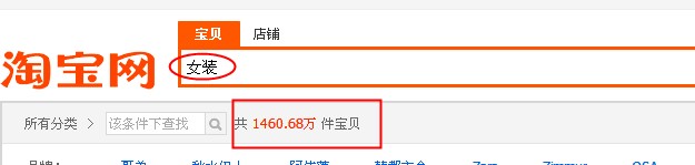 例如搜索“女裝”然后點(diǎn)一下“人氣”