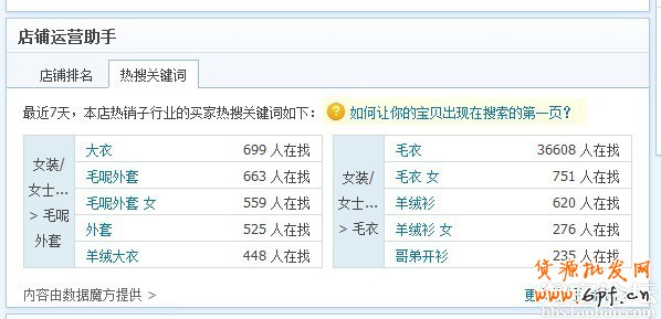 店鋪運營助手,可以看到關(guān)鍵詞,因為我這個店以前放的是毛衣 所以顯示了毛衣的關(guān)鍵詞。