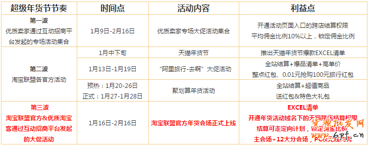 (圖:淘寶聯(lián)盟官方對(duì)外發(fā)布的超級(jí)年貨節(jié)活動(dòng)節(jié)奏)