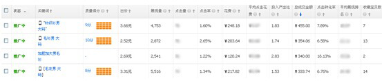 由于我推廣的是整體,基本上都是零銷量的店鋪產(chǎn)品,所以在加詞的時候,是從長尾詞開始加的,然后是中性詞,泛詞我先不加,但如果一定要加的話可以先出低價,或者精準(zhǔn)匹配之后再低價,主要還是看關(guān)鍵詞的點擊率,另外,加的詞一定要考慮整體的情況,例如男裝,長尾詞可以精準(zhǔn)引流,但是男裝的長尾詞出價明顯偏高,而且長尾詞的展現(xiàn)量比較小,如果整體點擊情況不好的話,就會導(dǎo)致質(zhì)量分下降,使得展現(xiàn)量就更少了,這樣的話,即是出再高的價格也很難獲取到流量。