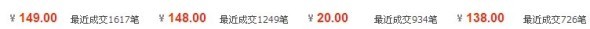 這里我走的是低價(jià)策略,幾近零利潤(rùn)的銷售。這里我自己的想法是盡管利潤(rùn)低,但圖的是人氣,利用人氣希望能待到店內(nèi)其他寶貝的銷售。如下圖所示:淘上最的最多的,賣149元,最近銷售1617。我只賣88元,不包郵(這是別家的)