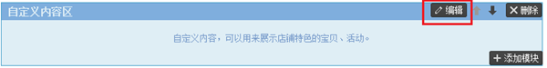 在裝修模塊的時候,當鼠標移動到店招模塊上,點選模塊上面的“編輯”按鈕。像下圖: