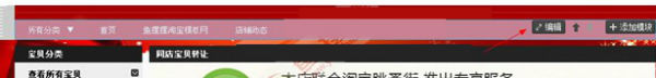 (一)首先登錄淘寶,進(jìn)入淘寶店鋪裝修后臺(tái)首頁(yè)的“頁(yè)面編輯”模式下,鼠標(biāo)放到導(dǎo)航條上,然后單擊右側(cè)的“編輯”按鈕