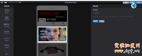 打開看看上面有說明:圖片大小:608*304,100kb。這個條件一定要滿足,否則我們無法上傳。下圖是模塊設(shè)置說明。添加上述的圖片后,我們要輸入圖片的鏈接地址,說到這個鏈接地址,我們一定要注意了,我們可以插入我們手機(jī)店鋪的地址,也可以放入我們某個寶貝的地址。無線端的鏈接地址跟pc端是不一樣的,這個大家切記,否則,你的圖片傳上去就只是圖片,沒有鏈接毫無意義。
