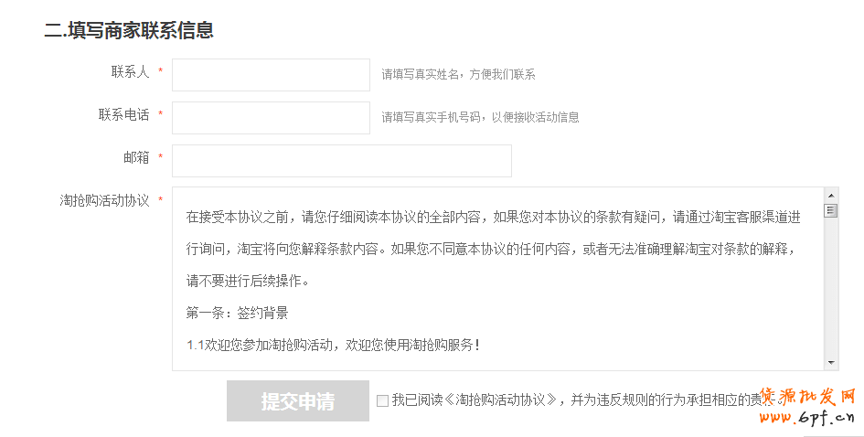 http://qianggou.taobao.com,里面有我們的報名入口、招商規(guī)則等信息。