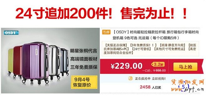 4、關(guān)于活動文案:24寸追加200件,售完為止,OSDY在參加聚劃算報名的時候,會因為銷量預估問題,備貨數(shù)量不足嗎?肯定是不可能的了,白底、紅色姓名的字體,帶給了消費者緊張的情緒,追加=不夠賣=瘋搶=大家都買了。在消費者的行為學中,一定要仔細觀察琢磨,從眾和社會認同原理在這里是可以體現(xiàn)出來的。