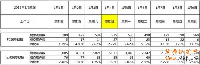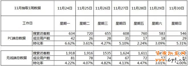 通過對11月的數(shù)據(jù)進(jìn)行對比,你發(fā)現(xiàn)了什么,不錯,PC端流量變化不大,但是無線端流量上升了2-2.5倍左右,但是轉(zhuǎn)化率缺下滑了,導(dǎo)致整體成交量還是差不多。