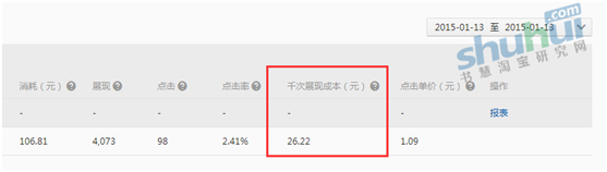 測試第一天的數(shù)據(jù)千次展現(xiàn)成本26.22元。
