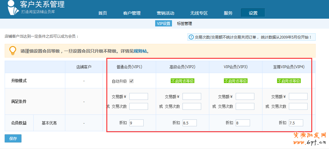 通過在會員關(guān)系管理后臺的設(shè)置中,可以把買家設(shè)置分為:普通會員、高級會員、vip會員、至尊vip會員,通過交易金額和交易筆數(shù)設(shè)置不同等級買家,從而加強(qiáng)買家購物榮譽(yù)感和粘性。比如,普通會員需要在店鋪購買過一次產(chǎn)品,成為普通會員,可以享受普通會員的折扣價格等。通過這種方式,帶動老客戶加入會員的行列,并為了享受更多的特權(quán)而提升自己的等級。